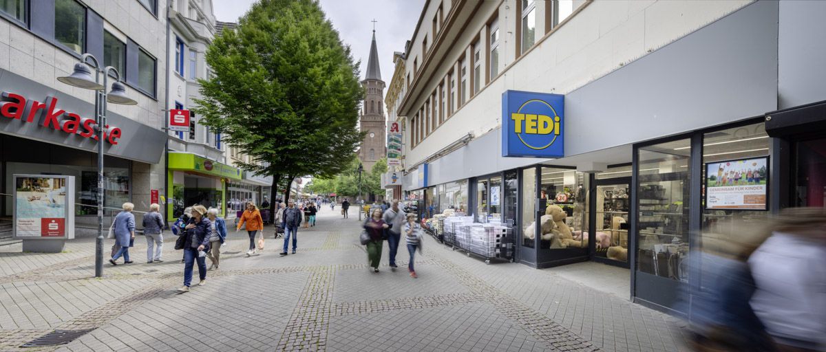 Die eigenwillige aber sehr geeignete Immobilie in der Wattenscheider Fußgängerzone kommt mit ihren langfristig vermieteten Gewerbeeinheiten der Diversität im DFI WOHNEN 1 zugute.